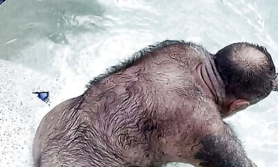 Huge hairy bear jerking a big boner in the chat